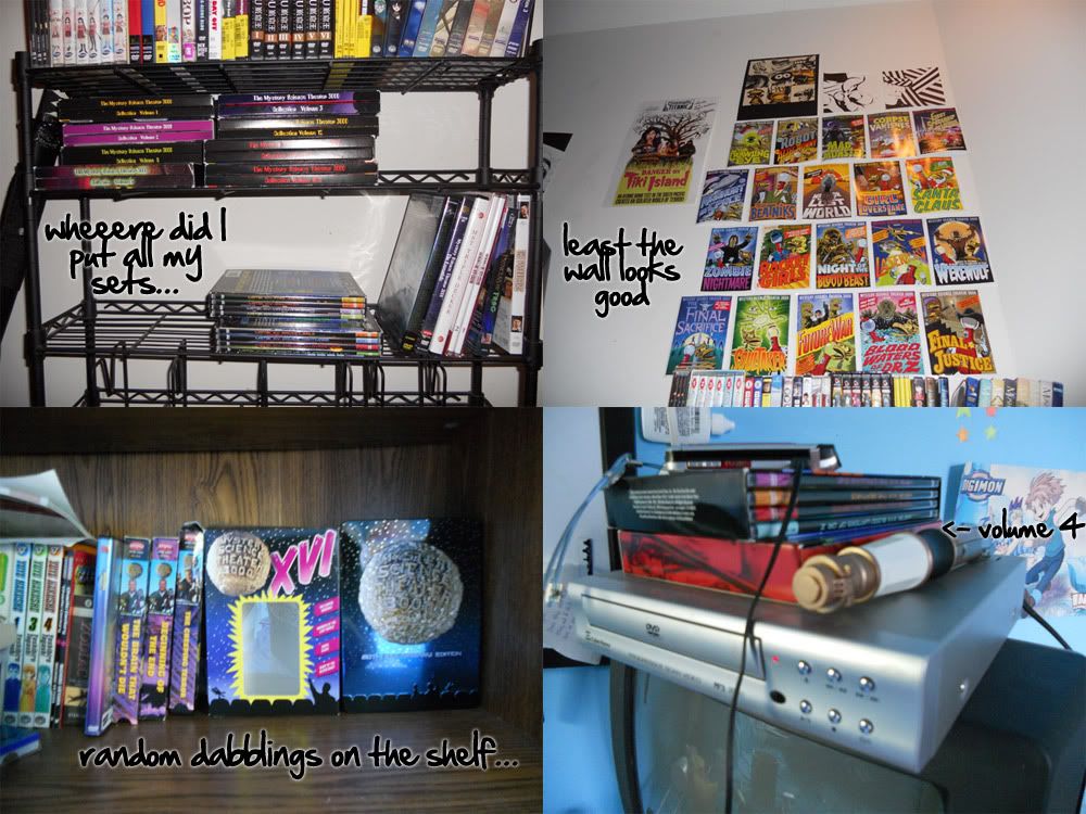 I realized that my collection is scattered all over the house. I blame going to college (wherein I brought all my MST DVDs, just in a CD case), coming back for summer, and watching different sets in different locations.