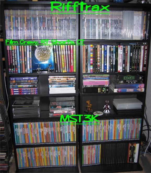 My collection starts with the internet episodes, followed by the Film Crew, then Rhino, Cinematic Titanic, next are the Shout! Factory episodes and last are the Rifftrax DVDs