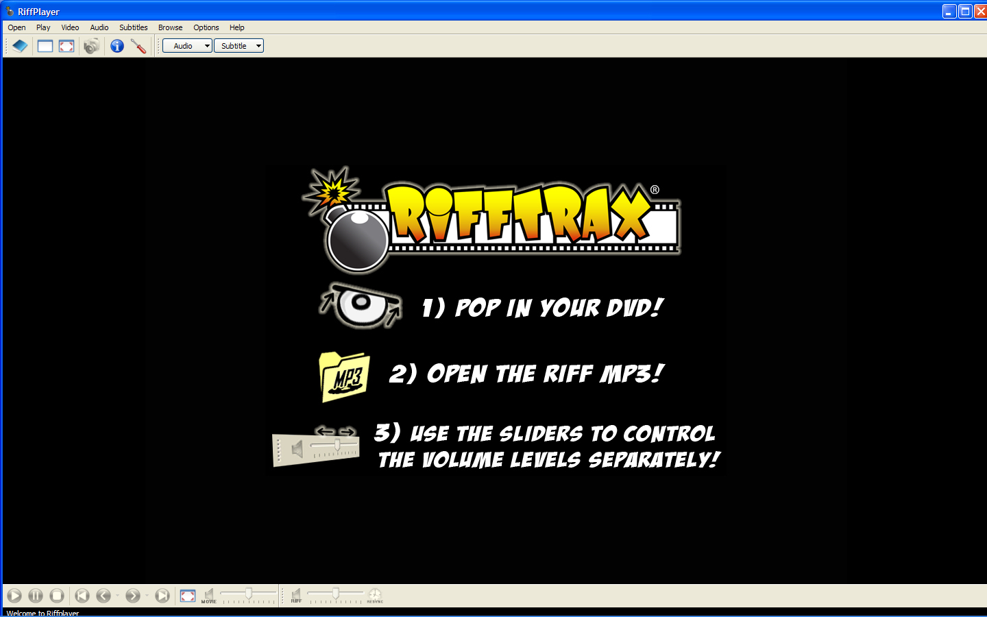 Installing the RiffPlayer is a breeze, and playing a DVD is a simple matter. You simply start the RiffPlayer, load the DVD, then use the RiffPlayer to select the associated RiffTrax MP3 file. The RiffPlayer scans the DVD for a few seconds, then you’re off and running.