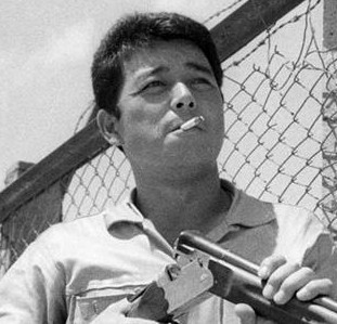 Wow, i only wish the photo in my obit was as bad@$$ as that one. barbed wire fence background, smoking a cigarette with an shotgun ready to load- the ground around him is probably littered with hard liquor bottles and the blood of his enemies. 8-)