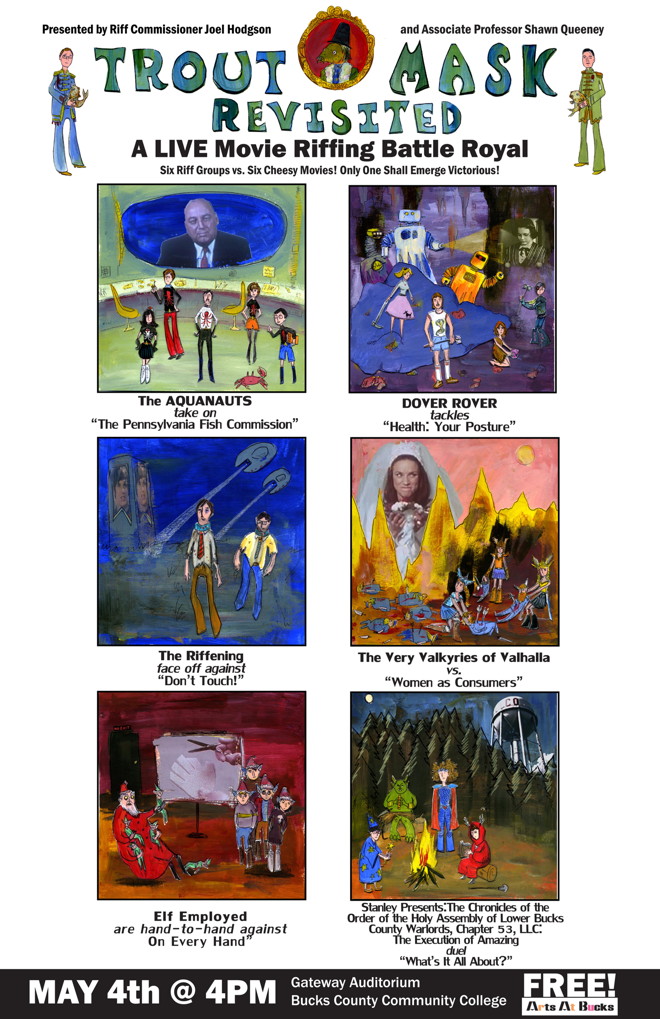 If you live in the Philadelphia area, you might find this of interest: This semester at Bucks County Community College, Joel has been teaching a workshop on movie riffing.