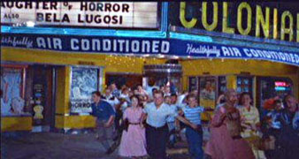 Later on, Matt was going to host a spook show, including a showing of “Daughter of Horror,” the movie that was supposedly showing at the Colonial in “The Blob.” Unfortunately, I couldn’t get to that showing, but maybe somebody else can report on it. I did get to see that afternoon’s double feature of “The Blob” and “Creature from the Black Lagoon,” the latter in old-fashioned 3-D. And there was some audience riffing of “The Blob,” like in the scene where one of the “teenagers” tries to warn a bartender about the monster: