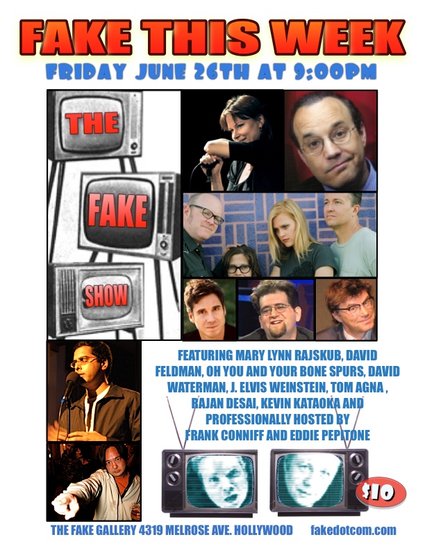 This is extremely short notice, but if you happen to be in the L.A. area tonight you might want to drop by the Fake Gallery at 4319 Melrose Ave. to catch The Fake Show. The show will be co-hosted by Frank and will feature an appearance by Josh.