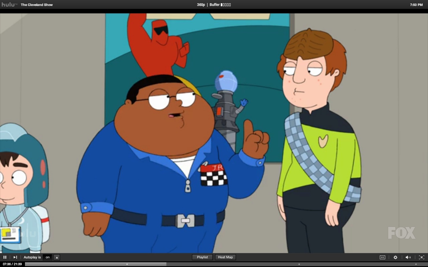 As for the debate, I’ll throw my two cents in and stay out of it. I like Family Guy, it was better in the past but still good today. I love American Dad, it was okay at the start and got better from there… except this season had an episode or two that were hit and miss for me. And Cleveland Show… meh, it’s a good premise that went bland by becoming a clone of Family Guy.