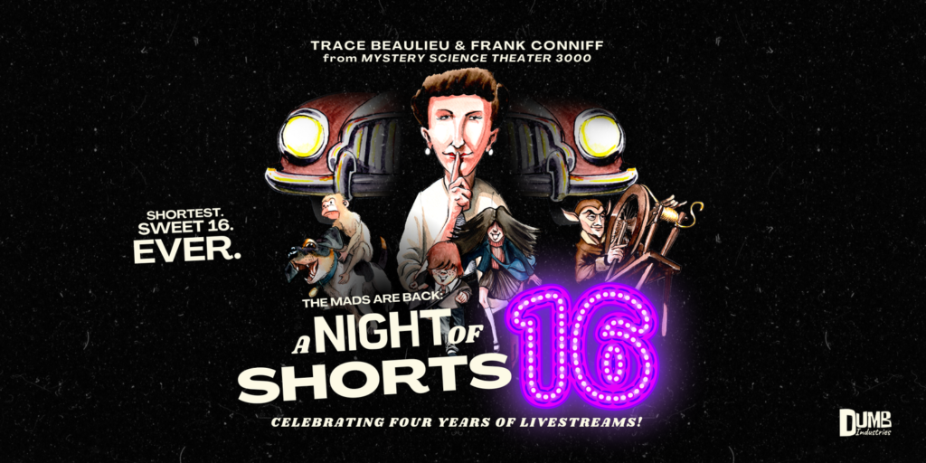Join The Mads on Tuesday, July 9 at 8 PM Eastern for “A Night of Shorts 16” followed by a live Q&A with guests Mary Jo Pehl, Bill Corbett and Kevin Murphy. Buy your tickets here. Update – Felicia Day will also be joining the Q&A.