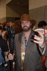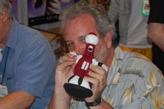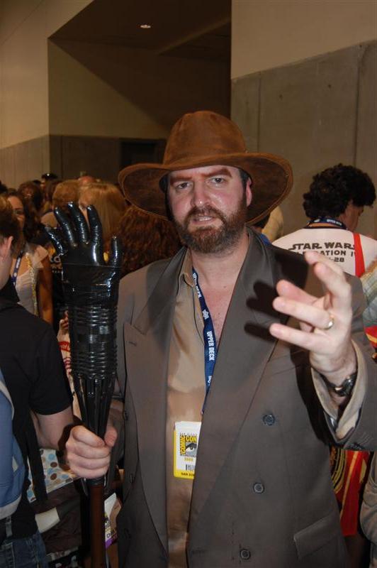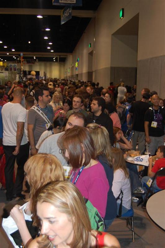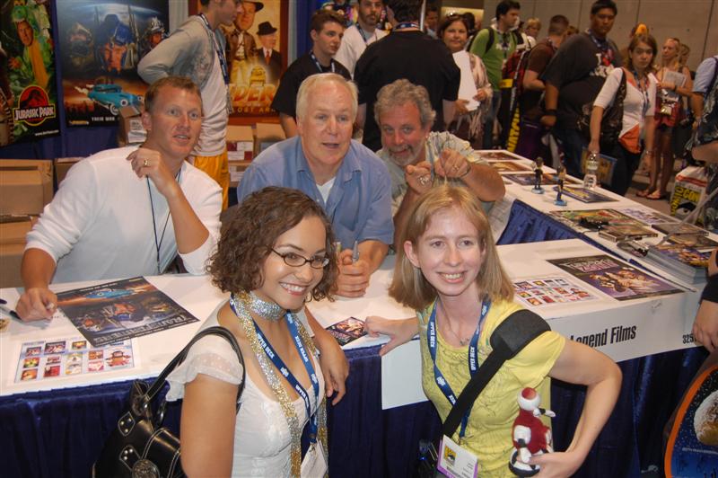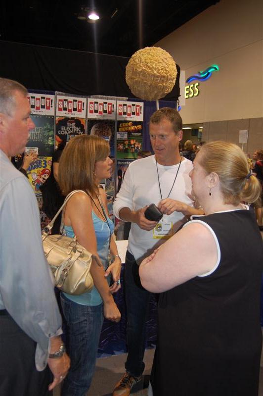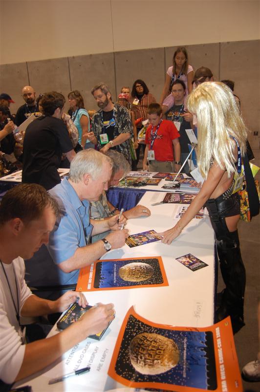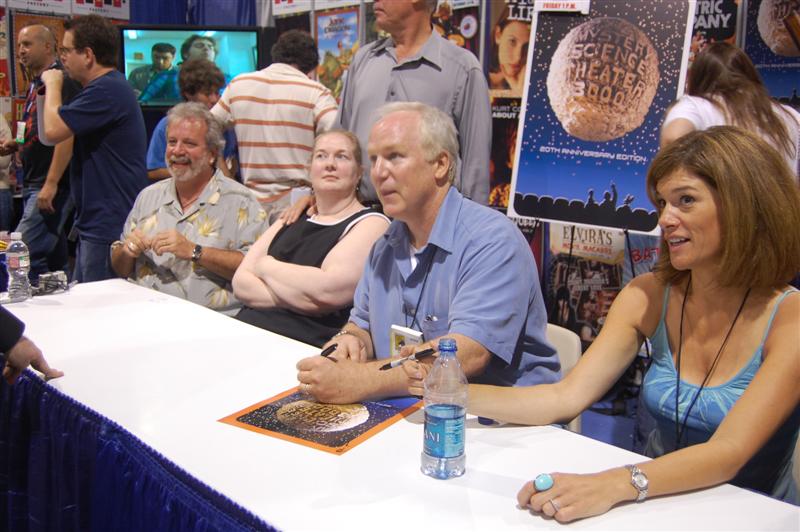 Comic-Con ReportHello from the sea of geeks, nerds and women openly carrying whips that IS Comic-Con! We started the day in the ShoutFactory hotel suite, hanging out with Mike and Bridget, Kevin, Mary Jo (and husband Ron), Bill, Joel, Jim and Trace at various points, as they wandered in out and doing press interviews, as well as taping segments for a feature on the history of the show that ShoutFactory is producing. We also sat down and offered some fan perspective on our favorite cowtown puppet show. We chatted for a while with our source at ShoutFactory, and one of the things he told us was that they have no plans to re-release episodes that Rhino has already released, so for those of you who have been worried that they might do that, you can relax. In the materials they are handing to journalists, we noticed one little feature of the upcoming 20th Anniversary release that we don't think anybody has mentioned before: It will include a Crow figurine and collector's cards as part of the set. By they way, we will be posting the names of the episodes that will be in the set later today. They plan to announce them at the end of tonight's panel, so check in about 8:30 pacific time. After taping their segments, Mike,