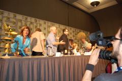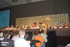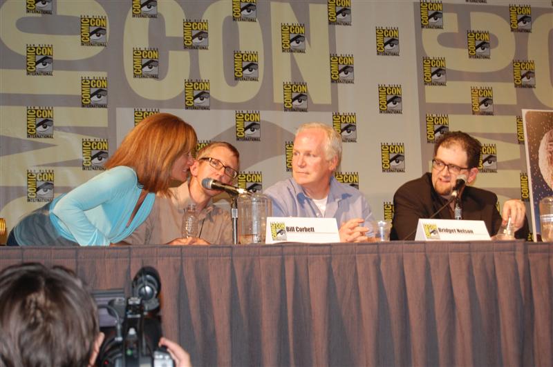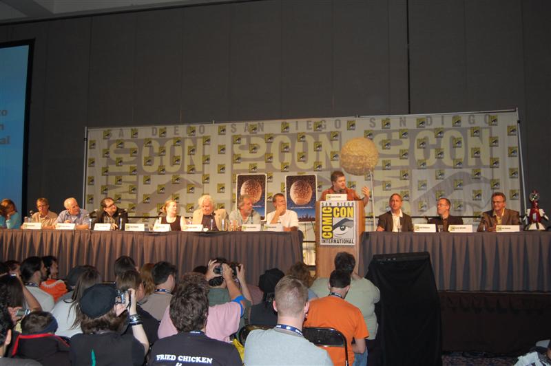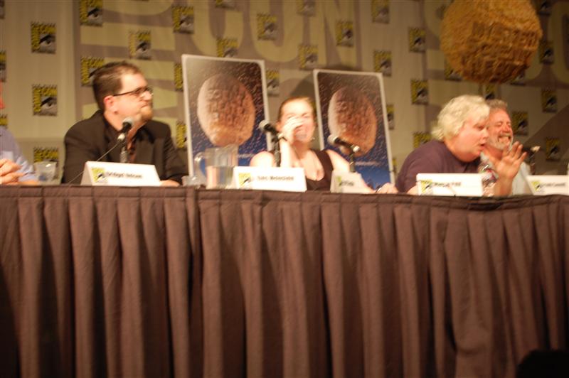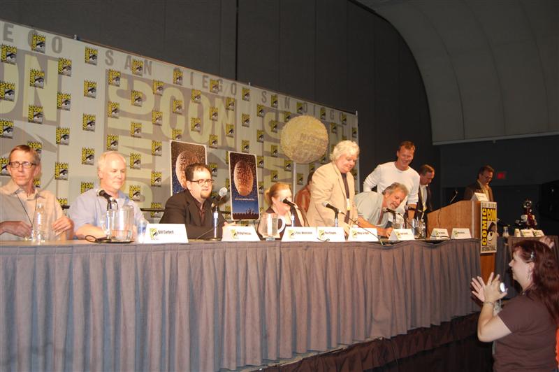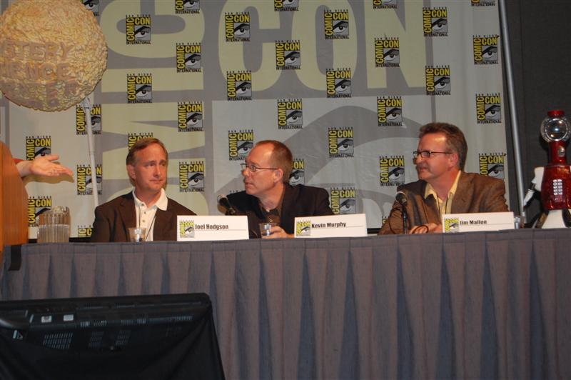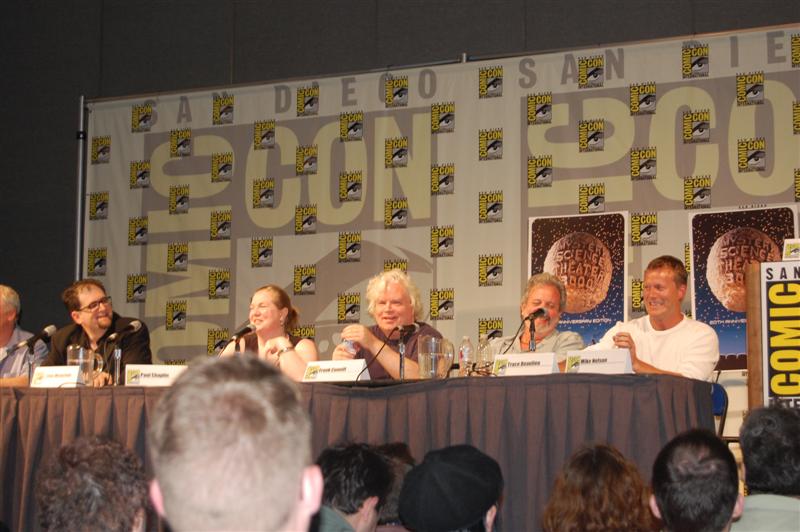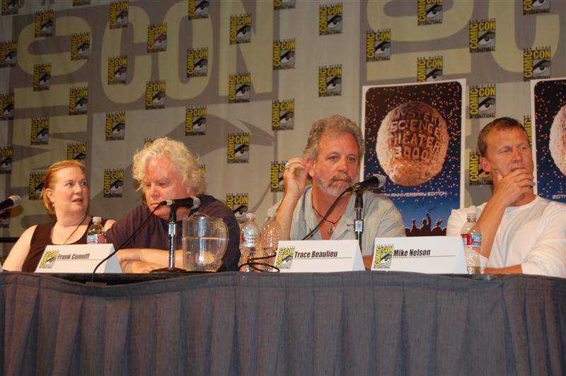 Comic-Con Panel ReportWell, if you were expecting Joel and Jim to come to blows or something, that didn't happen. In fact, Joel and Jim sat side-by-side and traded riffs very pleasantly. And not much new ground was broken. Many of the questions -- "does Joe Don Baker REALLY want to beat them up?" -- have been covered in many previous panels. And at the end of the panel, they announced that the entire panel will be included in the 20th Anniversary box set. So you didn't really miss anything earth-shattering, in that sense. But in another sense, you did. The panel was fun and very funny, and Patton Oswalt kept the discussion moving. He asked obscure questions like: "What was Gizmonic Institute really like?" Joel replied, with trademark deadpan, "We all knew it was shaped like a G." One bit of news that actually did get broken came from Paul, who said he is working on a music CD. "I have CDs in the back," he said, "They're not my music, though. I've got some Black Oak Arkansas..." Asked about where she got the character for Pearl, Mary Jo said the character was an "extrapolated" version of her mother. This prompted Frank to lean into his mic and groan "Heeeere we go....." Kevin pretended to be texting on his phone, claiming to be Tweeting, before Mike knocked it from his hands and Oswalt noted "We all know your phone just has gum and candy in it." There were many more great moments,
