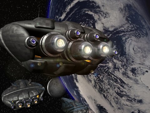 Freighters leaving Earth.
