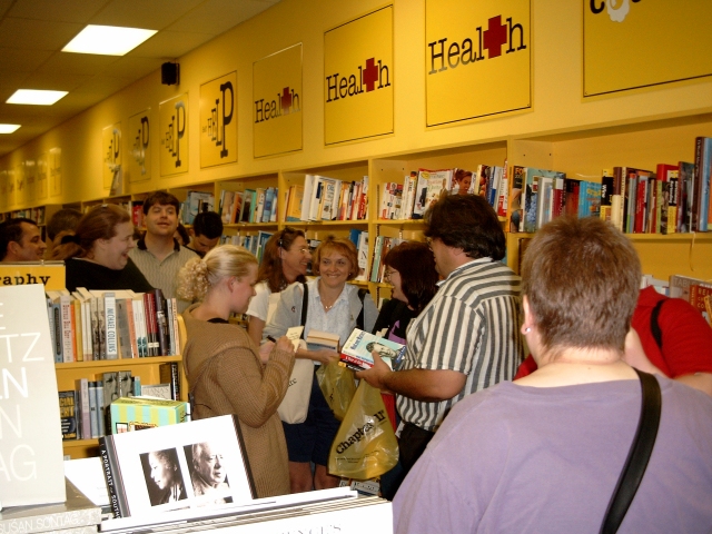 their books for a line of fans that stretched well back into the store.