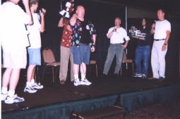 A band of conventioneers admire the Henry VIII's truth in advertising. |