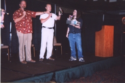 Your congenial Satellite News staff. From left: Steve Finley (aka Daddy-O), Brian Henry (Erhardt) and Chris Cornell